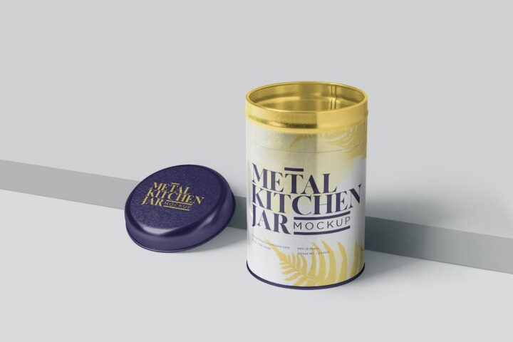 These steel jar mockups are best to showcase your metal kitchen pantry jar designs. Featuring 4 different shots equipped with smart object and well-named layers. Just open these PSDs in Photoshop, edit using these tools and make amazing presentations of your designs.