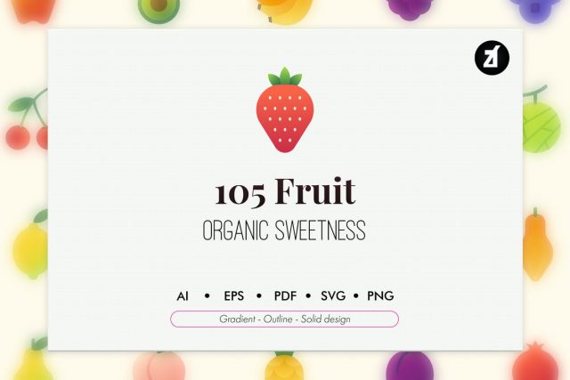 105 Fruit elements icon pack This pack was perfectly crafted for organic market and anything that related to fruit content.