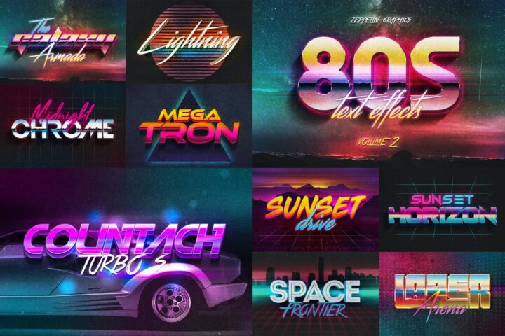 80s, Retro, Vintage, Text, Effect, Effects, 3d, Modern, Typography, Arcade, Game, Neon, Style, Addon, Logo,