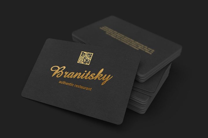 85×55, Branding, Business, Card, Corporate, Mockup, Corner, Round, Present, Presentation, Professional, Realistic, Black, Gold,
