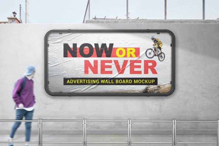 Banner, Advertising, Ad, Board, Mockup, Showcase, 3d, Wall, Street, Outdoor, Metallic, Construction, Frame, Glued, Concrete,