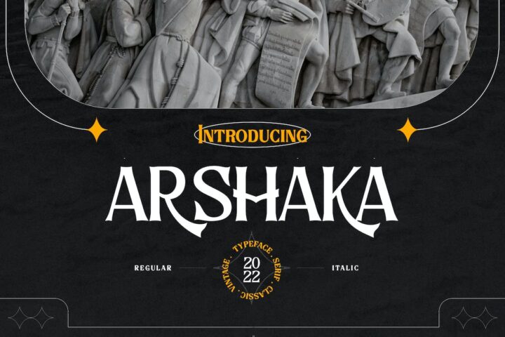 Arshaka Font is a graceful and elegant serif font. Its exquisite and refined style makes it incredibly fitting to a large pool of designs. The only limit is your imagination! This font is PUA encoded which means you can access all of the amazing glyphs and ligatures with ease!