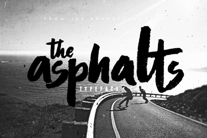 Asphalts Typeface – a mixture of rough and heavy brush strokes with a bit of easy-go-lucky script feel. Inspired by the steez of downhill passion that will uplift your brand name, logotype, identity, shirt design and presentations. Think of a word and type it using the Asphalts Brush, then put the word “brand” or “SKATE CO.” under it in Sans Serif form. You will admire the uniqueness of this font!