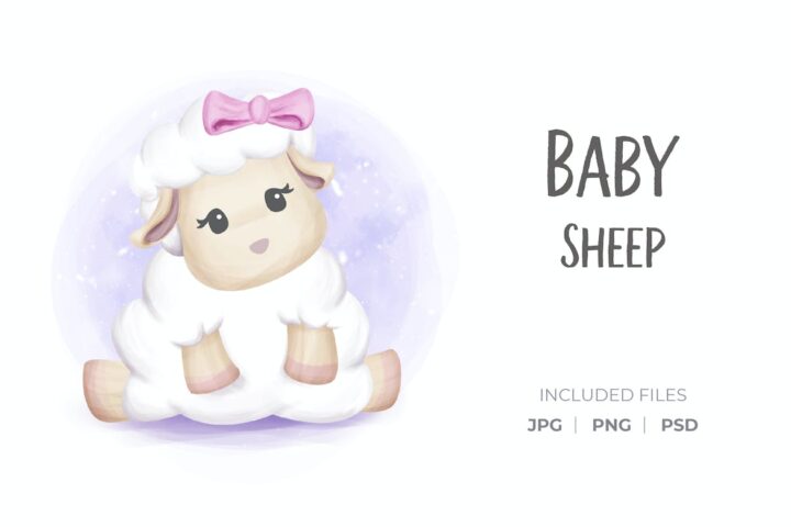 Animals, Cute, Baby, Nursery, Watercolor, Isolated, Clipart, Children, Character, Cartoon, Sheep, Girl,