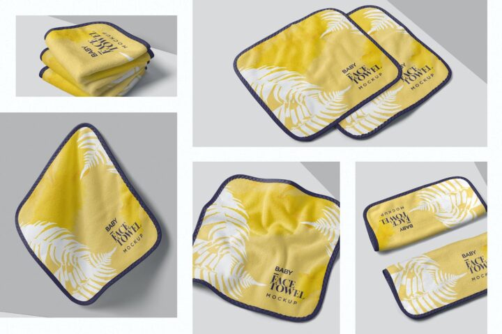 Mock, Ups, Baby, Face, Towel, Facial, Napkin, Wash, Cloth, Fabric, Cotton, Hand, kerchief, Square, Shaped, Textile,