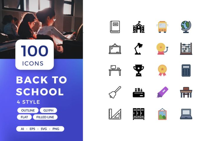 Icon, Icon set, Outline, Glyph, Solid, Flat, Filled, Line, School, Education, Back, Learn, Teaching,