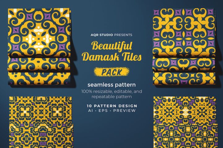Introducing!, Beautiful Damask Tiles – Seamless Pattern- Suitable for your design needs, All elements on this template are editable with adobe illustrator! Editable and Layered”