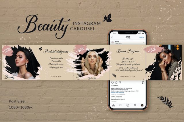 SEAMLESS SWIPEABLE GALLERY POSTS Discover new opportunities for your Instagram account. Seamless design! You’ll get Photoshop template with 5 seamless carousel posts. Easy to edit – just type texts and place photos. Easy to export – all slices are prepared!