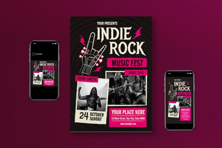 Flyer, Poster, Brochure, Design, Template, Instagram post, Instagram story, Indierock music, Indie, Rock, Music, Musical, Art, Concert, Graphicook,