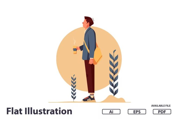 Boy Breaktime Drinking a Coffee Flat Illustration