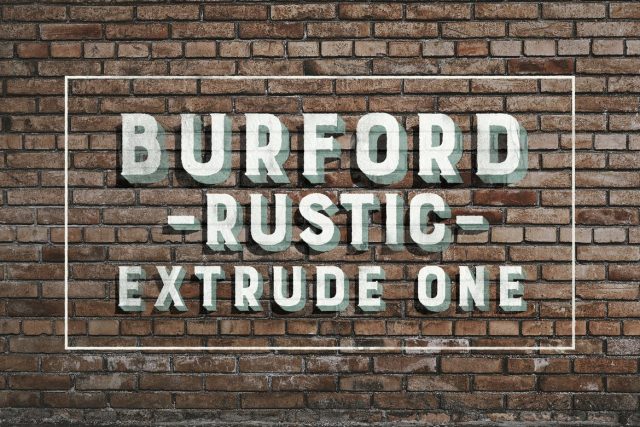 Burford Rustic is the weathered and textured alternative to the Burford Family. It works the same way as Burford as a layer-based font family, but with some style variations and new layering options. It includes 20 font files, starting with four texture variations from Black, Bold, Light to Ultralight. It also includes and Outline and two Inline Weights. Additionally it offers three line weights (light, medium and bold) for top layering options. There are two extruded fonts and two drop shadow fonts, all either in a solo version and set with Burford Rustic Black for users not using Opentype programs. For users that have Opentype programs, such as Adobe Illustrator, Photoshop, InDesign, Microsoft Publisher and Quark, each font also comes with a set of Stylistic Alternatives for letters A C E F G H P Q R. There are two versions of each letter, and by using contextual alternatives, no two letters next to each other will be the same.