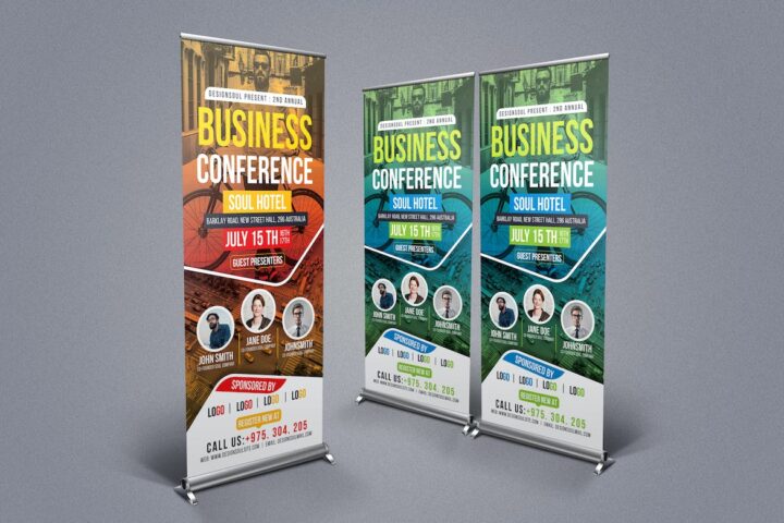 Business Conference Rollup Banner Template. This layout is suitable for Conference and production business. Very easy to use and customize.