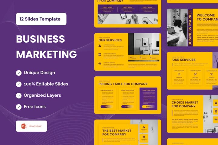 Business Marketing Presentation Template – Powerpoint is a Presentation/Pitch Deck Template with professionals and a modern style ready to make your next presentation amazing.