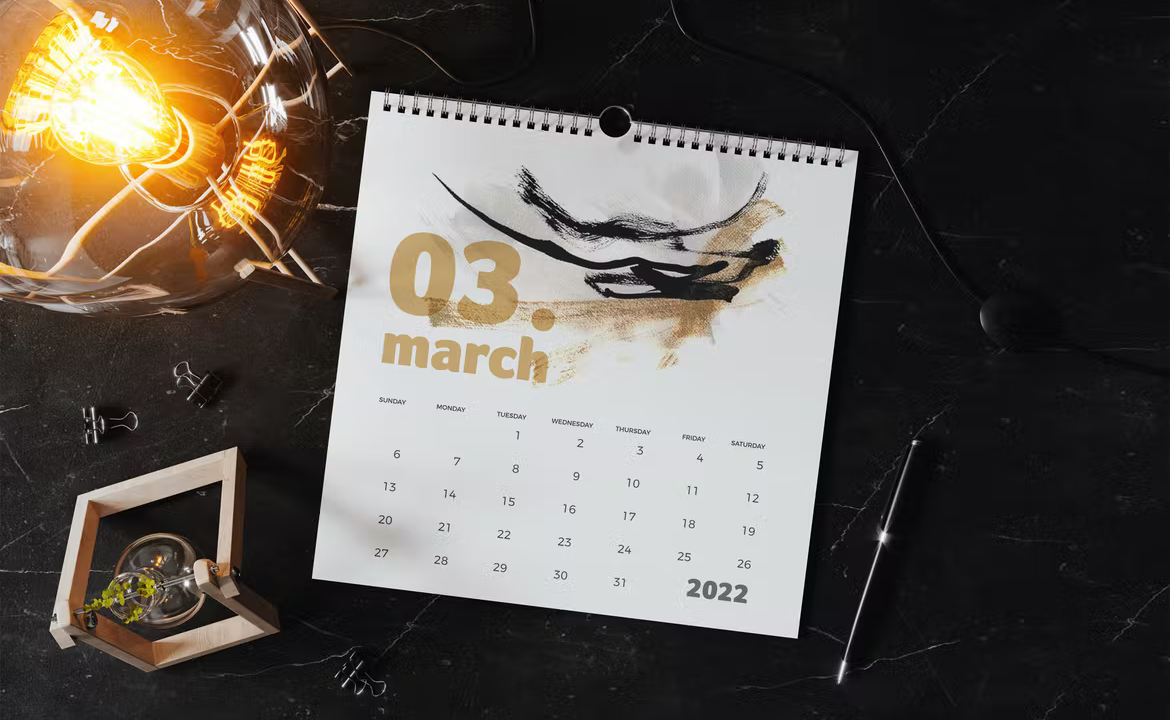 Square Spiral Binding Wall Calendar Mockup