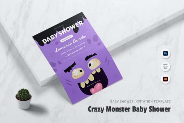 Crazy Monster Baby Shower invitation