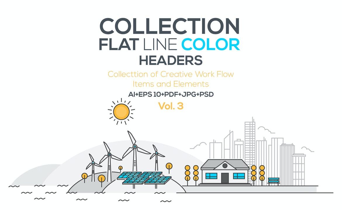 Set of Flat Line Color Banners
