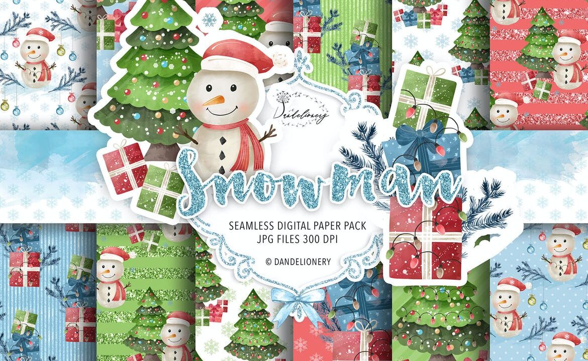Snowman digital paper pack