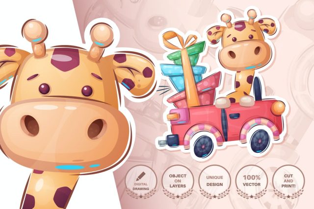 Giraffe in the car seamless pattern
