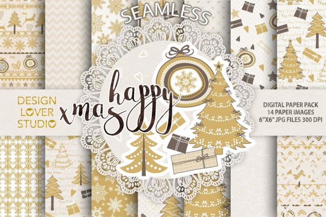 Gold christmas digital paper pack