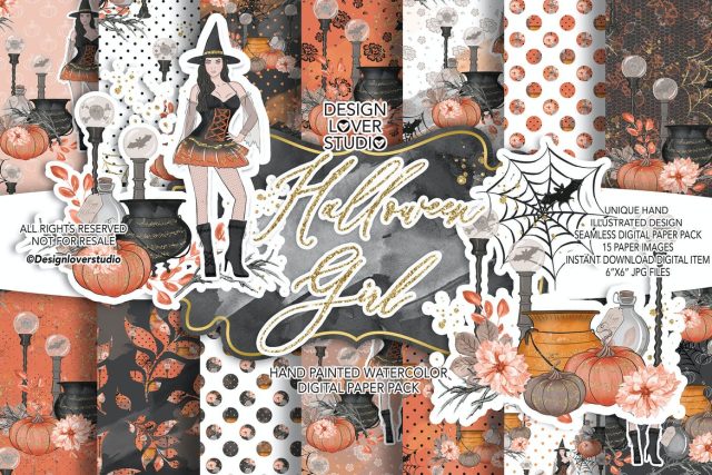 Halloween Girl digital paper pack