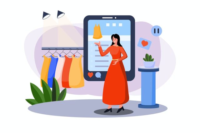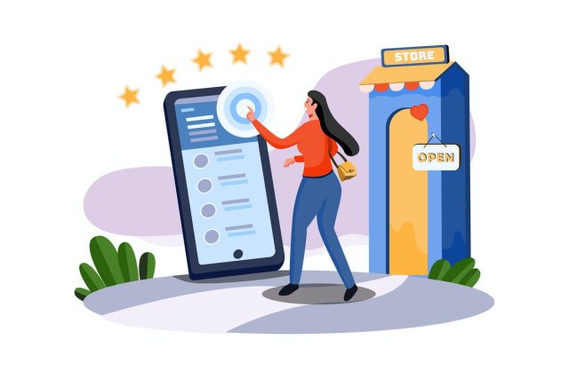 Female doing product review Illustration