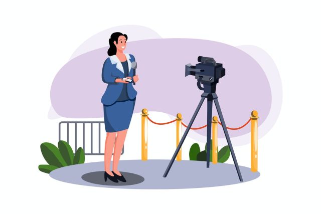 Female news reporter giving news report