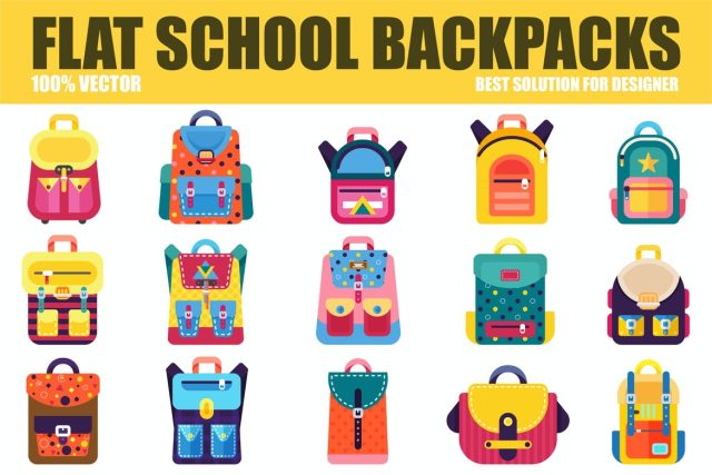 Flat School Backpacks Vector