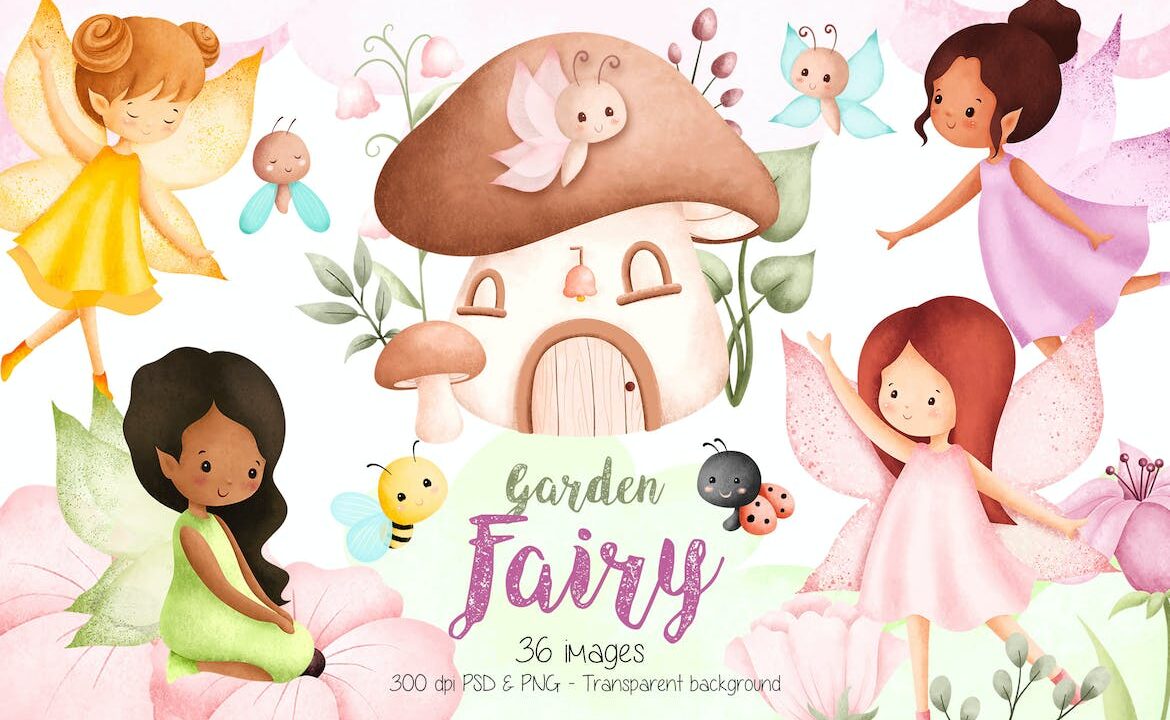 Garden Fairy and plants clipart