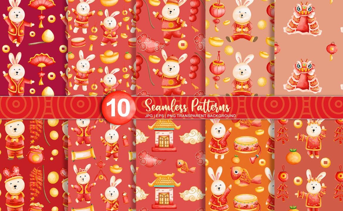 Chinese New Year Rabbit Zodiac Seamless Pattern