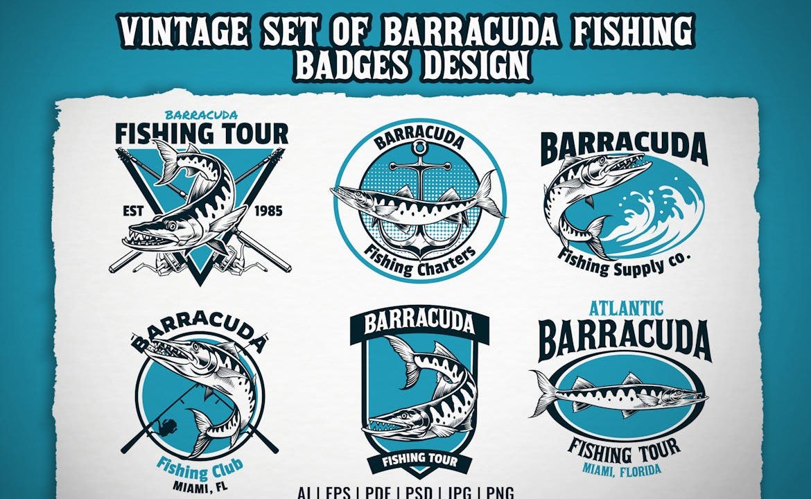 Set of Barracuda Fishing Badge Design
