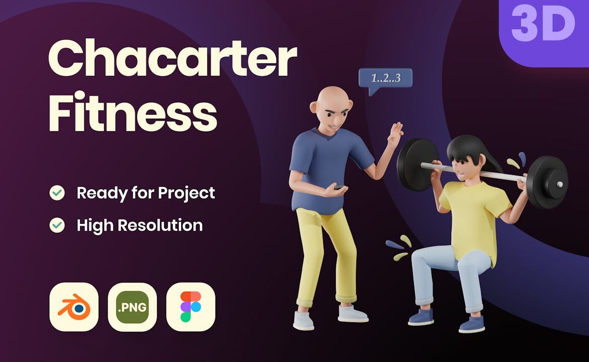 3D Character Fitness Illustration
