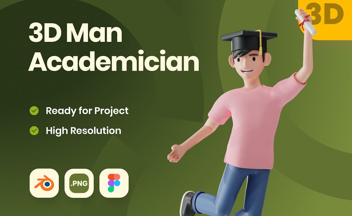 3D Man Academician Illustration