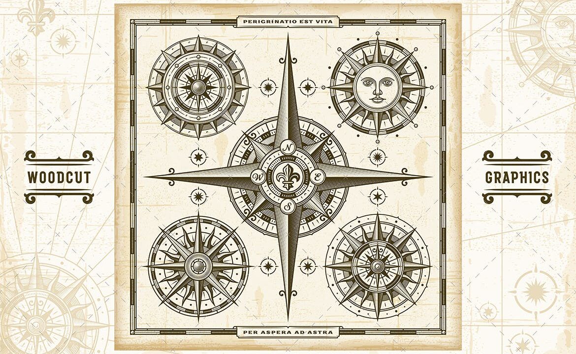 Vintage Compass Roses Set