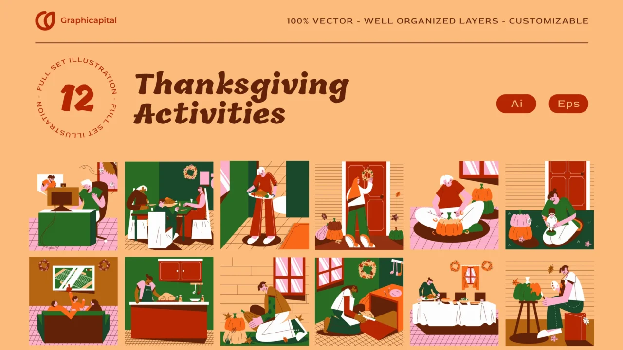 Brown Thanksgiving Activity Illustration Set
