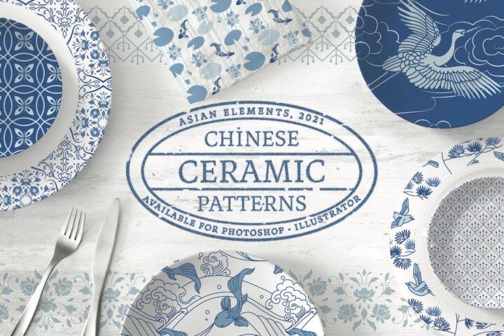 A Set of 12 Chinese Patterns inspired by classic Chinese ceramic ware since pre-dynastic times. This collection of patterns for Photoshop & Illustrator has been thoughtfully-researched to ensure its cultural accuracy, yet reinterpreted for modern and contemporary application.