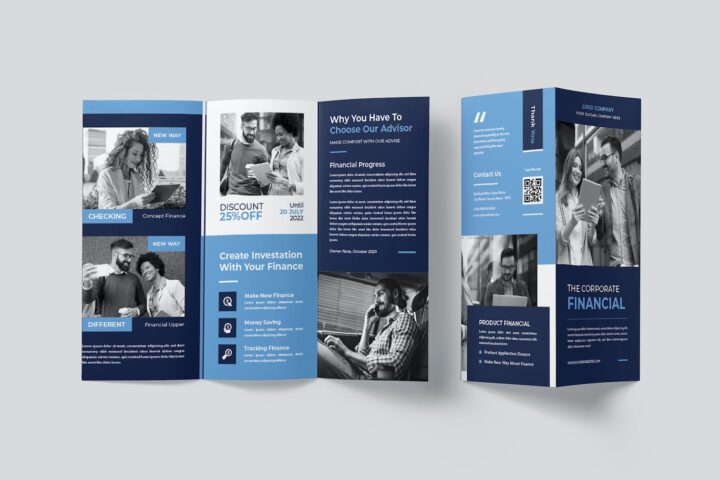 Corporate Financial Advisor Trifold for financial advisor brochure. With flat design make your design stand out, with simple, clean, and minimalist design concept. for high quality brand asset.