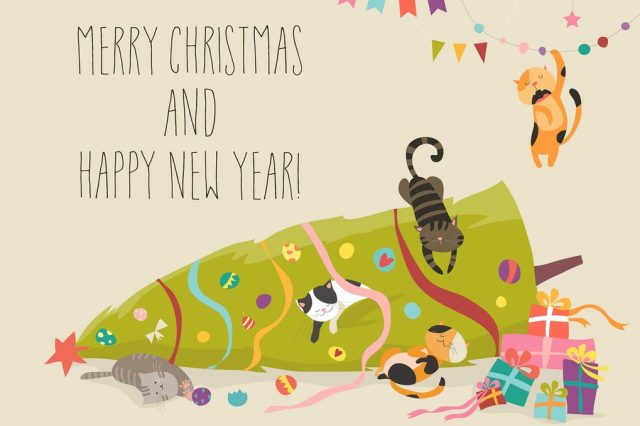Crazy cats with Christmas tree Vector