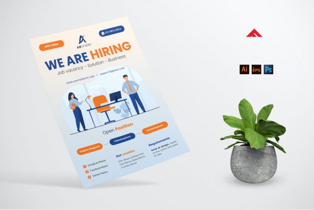 Best Job Flyer Template designed for exclusively employer who are looking for a new talent or team member. The design is fresh and modern suitable in any ad placement ad and easy to create as digital poster.
