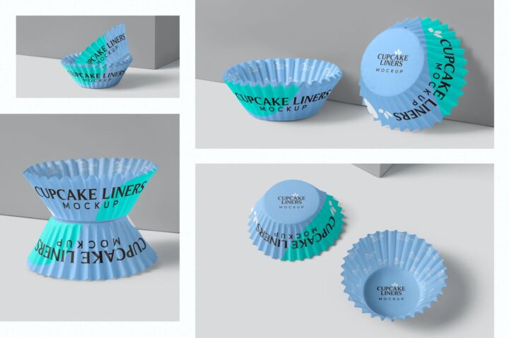Use these cupcake liner mockups to give your custom cupcake wrappers and bakery branding designs a realistic look. With the help of smart object options and well-named layers, you can easily change the design, color, light effects, shadows and background of these mockups with your choice.