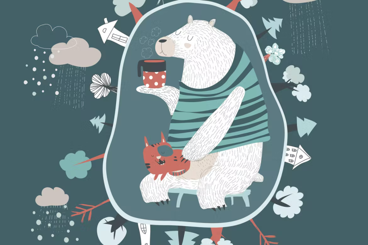 Bear, Winter ,Den, Animal ,Snow, Card, Cat, Holiday ,Cozy, Friendship, Friends, Coffee ,Cute, Tea, Funny, gfx