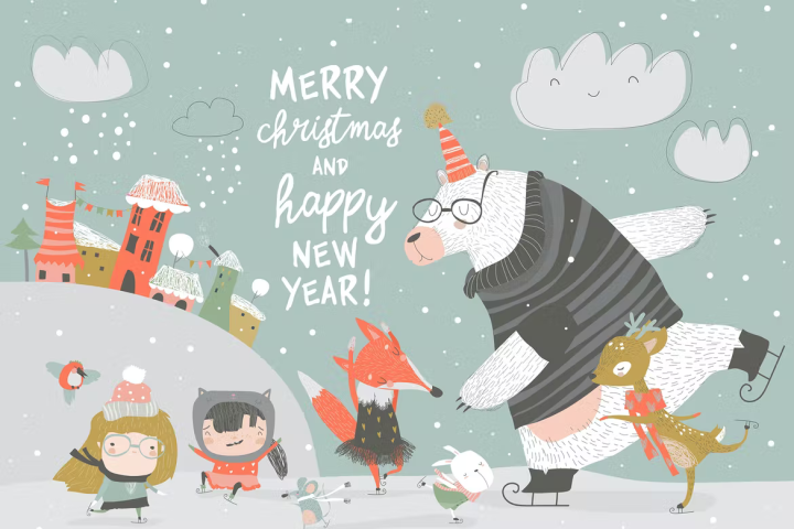 Christmas ,Skating, Skate, Deer ,Mouse ,Bear ,Fox, Rabbit, Reindeer, Girl ,Snow ,Animal ,Activity ,Little ,Kids, gfx