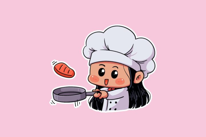 Cute Female Chef Cook Meat chibi Illustration