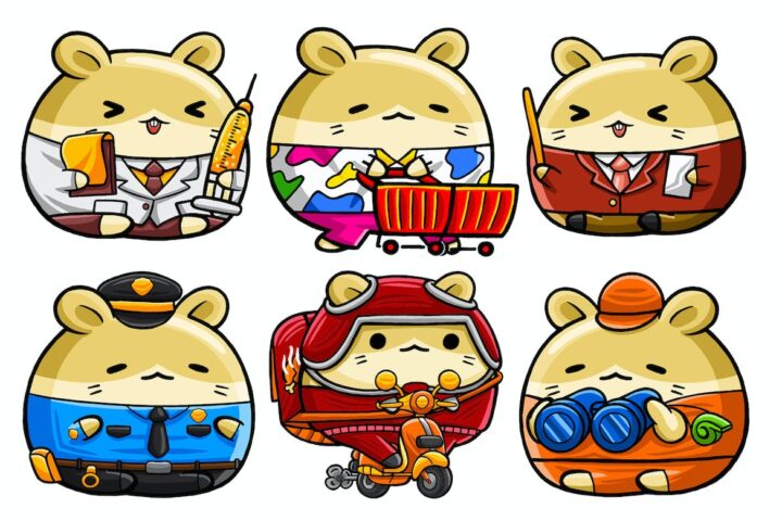 Cute, Hamster, Profession, Vector, Pack, Lifeguard, Doctor, Food, Delivery, Shopper, Police, Teacher, Fluffy, Small, Worker,