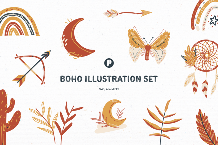 Creating your design for the special ones is always fun. Moreover, if you are a big fan of a bohemian style, it can be a super fun challenge for you. Bohemian style always can pull out the lively and homie feels that make people feel the warmth. Creating this style of design can deliver the warmth of your love to them. Here is the Cute Hand Drawn Boho Illustration Set that you can simply use to make your design look even more attractive.