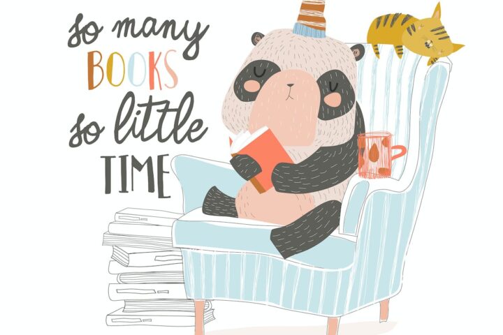 Book, Panda, Armchair, Reading, Cartoon, Cute, Isolated, Vector, Cozy ,Colorful, Education, Magic, Fairytale, Coffee, Cup, gfx