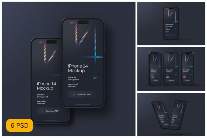 Dark iPhone 14 Pro Mockup Set