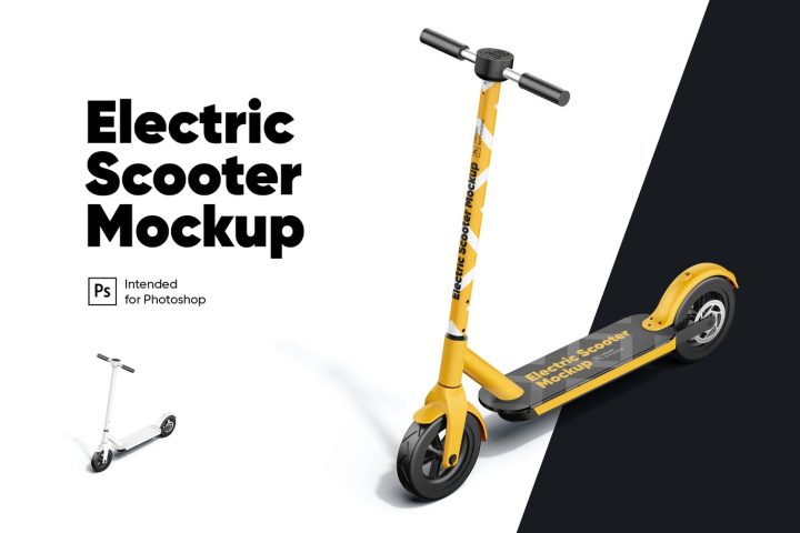 Create an elegant presentation for your designs with this fully customizable Electric Scooter Mockup. Includes smart-objects and masks, allowing you easily add your design and lets you change the color for most scene objects.