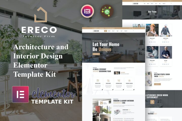Ereco – Architecture and Interior Design Elementor Template Kit is an Elementor Template Kit for quickly and easily creating a full esport website for your clan, guild or gaming team. It is optimized for the free Hello Elementor theme but can be used with most themes that support the Elementor page builder. Customize fonts and colors via the built in Elementor Theme Styles controls and load in your photos, logos and content using the visual drag and drop builder. This kit is designed for use with Elementor Pro and includes support for Theme Builder global templates such as header, footer and blog.