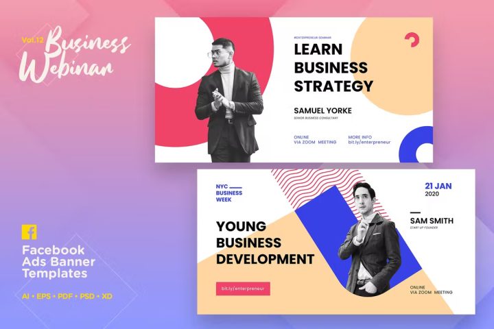 Business, Ads, Banner, Facebook, Webinar, Seminar, Talkshow, Course, Consultant, Strategy, Development ,Improvement, Geometric, Pop, Startup, gfx
