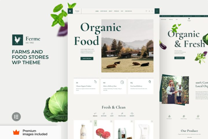 Ferme is a clean, modern eCommerce WordPress theme with all the necessary features for Farms, Food Stores, Grocery Markets, or any Shop or Business website in the agricultural sector. Aside from full WooCommerce compatibility, a stunning set of shop pages and product layouts are available, with Elementor and Elementor Pro support.